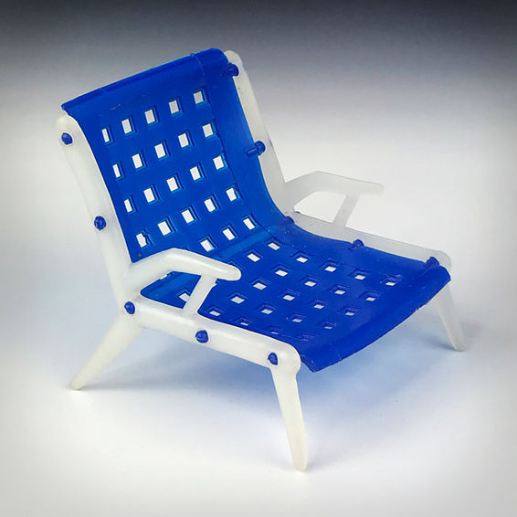 Zestaw składanych mebelków ogrodowych (wys. 8 cm) z miękkiego plastiku, z ażurowymi siedziskami mocowanymi na zaczepy. Wyrób fabryczny, Bułgaria lub ZSRR, lata 70-80. XX w.